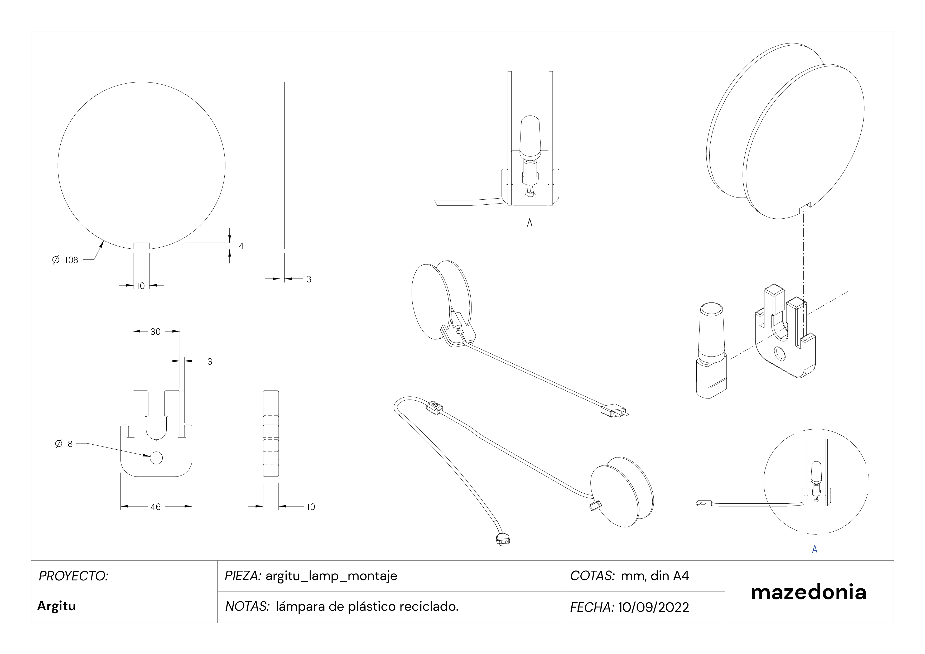 Argitu lanpararen inspirazioa argiaren efektu likuatu eta plastiko mixologiaren menuan du jatorri, Mazedoniak sinatuta: limoizko, aguakate, tomate eta Valentziako odol laranja zukuak. Diseinu eta ekonomia zirkularra da bere arimaren esentzia, hiritarren hondakin plastikoak berziklatu dira diskak sortzeko, alegia.