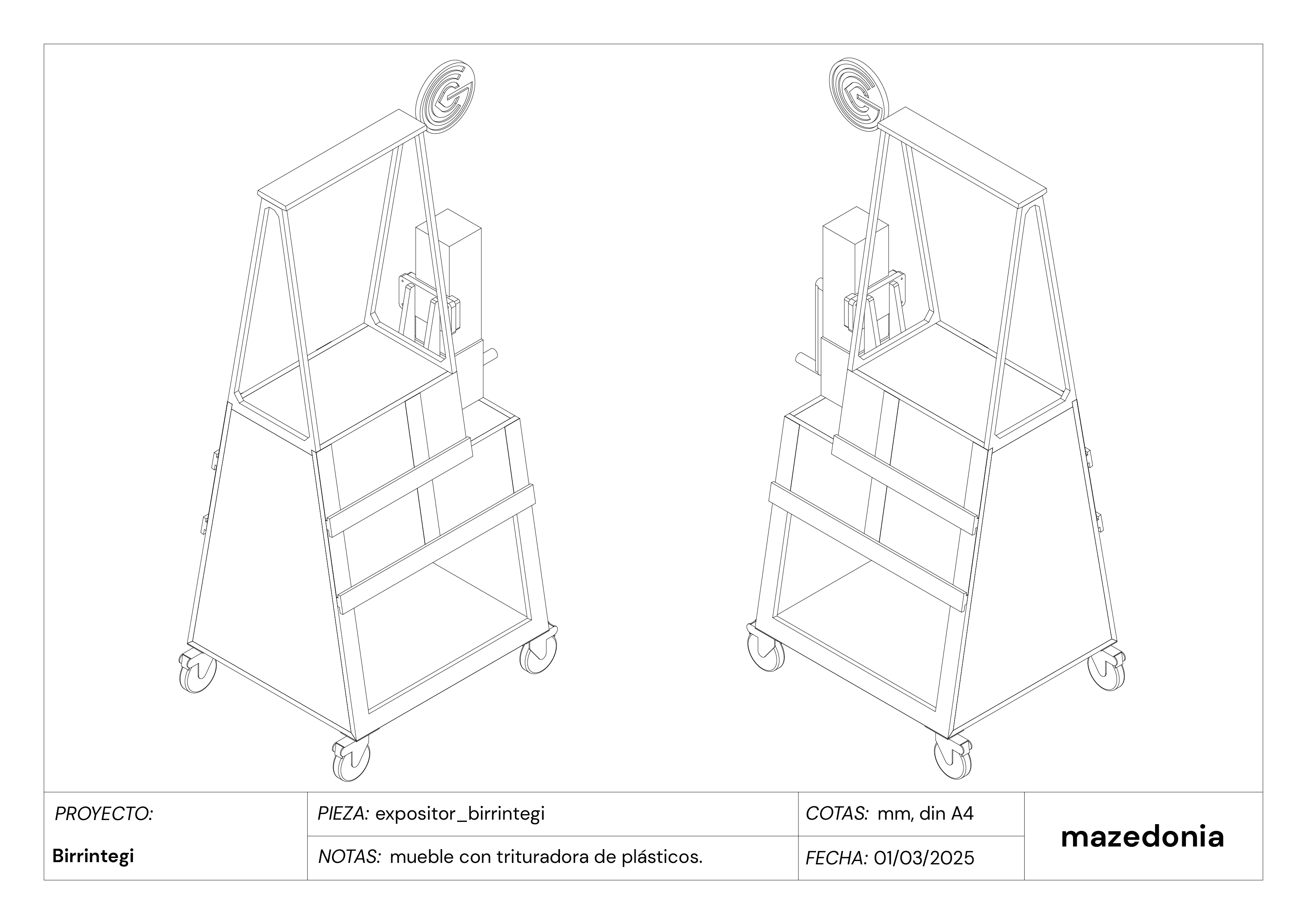 Birrintegi altzari desmuntagarria eta nomada da. Era berean, estazio interaktibo bat, plastikozko tapoien gaikako bilketa-kanpainak ekitaldietan (kiroletakoak, hezkuntzakoak, etab.) jakinarazteko, eta horrela birziklapena errazteko. Deposituan tapoiak sartu eta birrindu egiten dira, errotatxoa biraraziz.