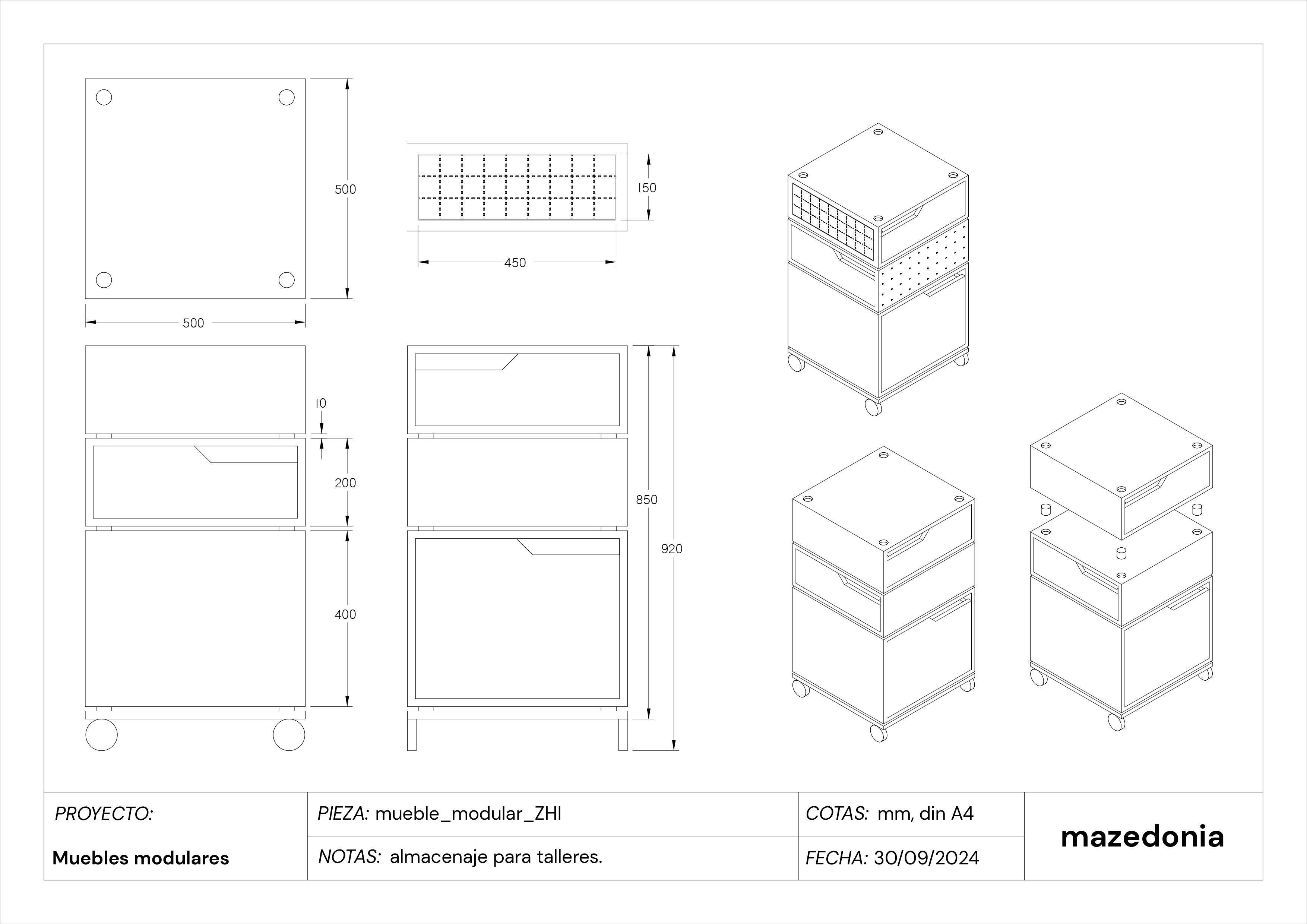 Zirkular Hub Ibiltariaren altzariak dira, Mazedonia Diseinu Estudioak diseinatuak eta garatuak. Altzari modularrak egurrez egin dira bere osotasunean. ZHI eskola ibiltariaren beharrak asetzeko diseinu desmuntagarriak dira. Gainera, alboetan grabatutako grafikak erregela modura erabili daitezke.
